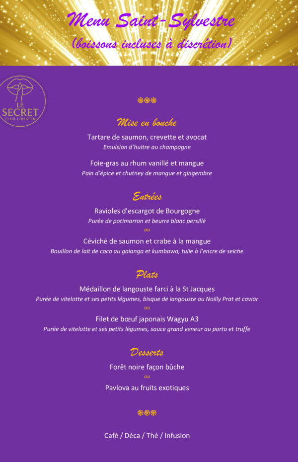 Diner, boissons et club, dès 20h : 350€ par couple (sur réservation avec acompte)