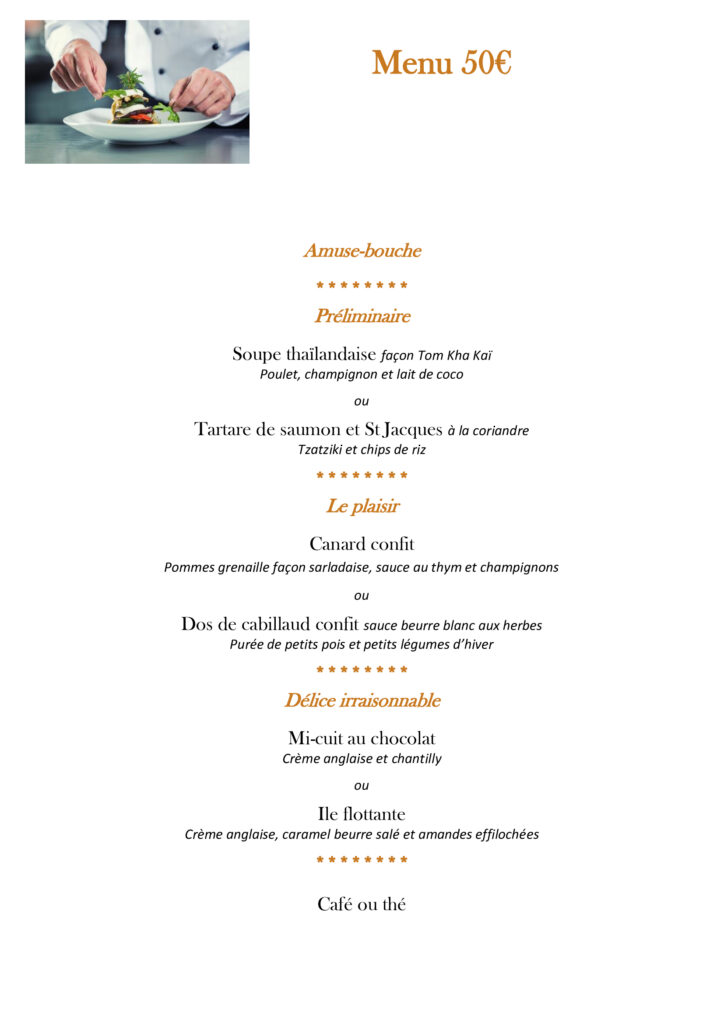 le restaurant vous propose un menu gourmand à 50€